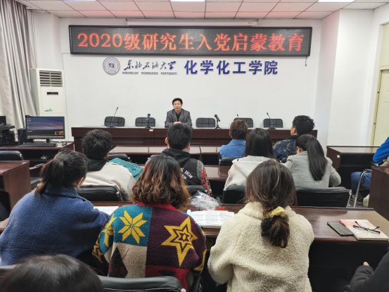 10月15日,作为2020级新生入学教育的一个重要组成部分,化学化工公司党委开展了2020级新生入党启蒙教育。在化工馆学术报告厅,化学化工公司党委书记王立斌以《坚定信心跟党走 青春建功新时代》为题,为2020级全体研究生上了一堂生动的入党启蒙教育专题党课。