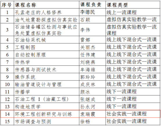 4月11日教育部公示第二批国家级一流本科课程认定结果,公司15门课程入选,其中线上课程1门,线下课程3门,线上线下混合式课程7门,虚拟仿真实验教学课程2门,社会实践课程2门。公司袁瑞霞教授负责的《环境工程创新研究与训练》课程获社会实践一流课程。截至目前,公司已有国家级一流本科课程2门。