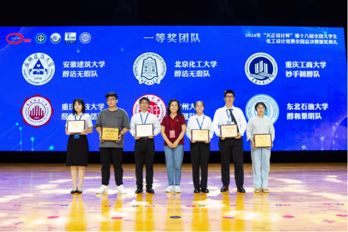 8月22日,由中国化工学会、中国化工教育协会主办,大连理工大学承办,浙江省天正设计工程有限公司冠名赞助的2024年第十八届全国老员工化工设计竞赛全国总决赛在大连理工大学落下帷幕。由公司张梅、宋军、刘发堂、张亚男、柳艳修等教师指导,2021级化学工程与工艺员工董畅、张勇、张小雨、张畅、刘杰霏组成的“醇和景明”团队,历经东北赛区选拔赛以及全国总决赛的激烈角逐后喜获全国一等奖。
