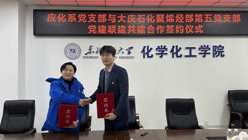 2025年12月12日,大庆石化公司聚烯烃部第五党支部与公司应化系党支部开展党建联建共建活动。应化系党支部书记翟岩亮、宣传委员陈丽铎、纪检委员张娜、组织委员梁嫄,大庆石化公司聚烯烃部第五党支部书记史红宇、支部党员一级工程师陈雷、三级工程师南天一等代表共同出席并举行共建签约仪式。在签约仪式上,应化系党支部书记翟岩亮、大庆石化公司聚烯烃部第五党支部书记史红宇分别介绍了各自党支部的基本情况,并共同签署了《党建共建协议书》。双方围绕产教融合、人才培养与科研攻关等重点内容进行了深入交流,一致同意以党建共建为平台,积极探索校企协同新模式,推动资源共享与优势互补,实现党建与业务互促共进。
